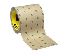 Double-sided tape with a paper release liner for pad to pad attachment. Features 3M™ Laminating Adhesive 300MP with a thin polyester film for dimensional stability. Higher adhesion strength for foam lamination and graphic attachment. Provides easier handling and good gap filling for rigid to rigid substrate bonding