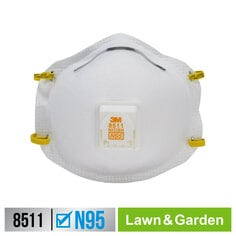 3M™ COOL FLOW™ EXHALATION VALVE helps direct exhaled air downward and allows for easy breathing;ADVANCED FILTER MEDIA for easier breathing;ALSO HELPS FILTER pollen, mold spores and dust particles encountered during outdoor activities such as gardening, cutting firewood, raking, and mowing;COMFORTABLE for long periods of wear;CONVENIENT, DISPOSABLE DESIGN;Contains no components made from natural rubber latex;DIY/Home Use: Use ONLY in NON-HARMFUL environments. Occupational/Hazardous Use: Use under a government regulated (e.g. OSHA) respiratory protection program. WARNING: Limitations apply; Misuse may result in sickness or death. See product packaging and insert or call 3M in USA at 1-800-243-4630. In Canada, call 1-800-267-4414;LIGHTWEIGHT DESIGN for comfort;M-NOSECLIP helps provide a custom and secure seal;NIOSH-APPROVED N95 for at least 95 percent filtration efficiency against certain non-oil-based particles and aerosols;Package contents: 2;RECOMMENDED FOR relief from dusts and certain particles encountered during sanding projects (bare wood, non-lead painted surfaces, or drywall), grinding, sawing, sweeping, installation of fiberglass insulation;STRETCHABLE, BRAIDED HEADBANDS for comfort;UP TO 50% EASIER BREATHING. Compared to non-valved 3M™ 8200 Testing
