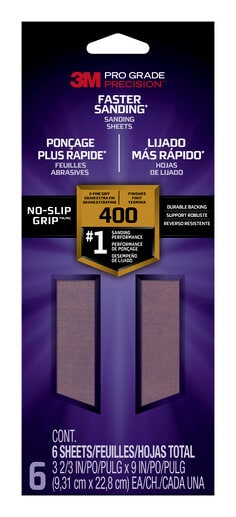 Available In A Range Of Grits For A Smooth Finish. Conforms To Your Surface For Easier Sanding. For Best Results, Sand With The Grain Of Wood, Working Through A Sequence Of Grits From Coarse To X-Fine. Do Not Skip More Than One Grit Between Each Sanding Step. For flattening grain. Great For Construction, Woodworking, Carpentry, And Home Improvement Projects. No-Slip Grip Backing And Durable Materials Help Reduce Hand Fatigue. Package Contents: 6 Sanding Sheets. Premium Mineral Grits Are Made With Technology Found In Cubitron Ii Industrial Abrasives. Recommended For Use With 3M Personal Safety Products. Sandpaper Color Will Not Discolor The Surface You Are Sanding. Size: 3-2/3" X 9". Suitable For Wet Sanding Or Dry Sanding