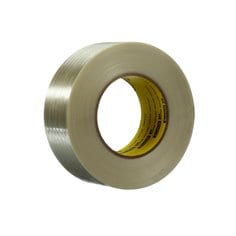 Able to withstand rough shipping and handling conditions. Ideal for metal splicing, coil tabbing, bundling and reinforcing applications. Polyester yarn filament-reinforced tape has added strength for high impact, elongation and cut resistance. Synthetic rubber adhesive bonds easily to most fiberboard, plastics, painted, printed and non-oily metal surfaces