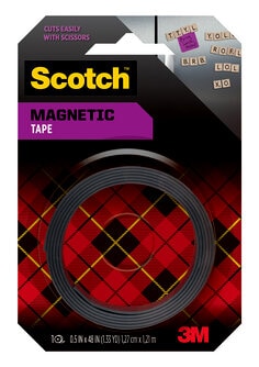 Scotch Magnetic Tape features 3M Permanent Adhesive on one side and a magnet on the other. Holding lightweight items on magetic surfaces this tape is ideal for crafting projects.